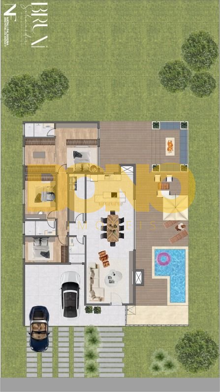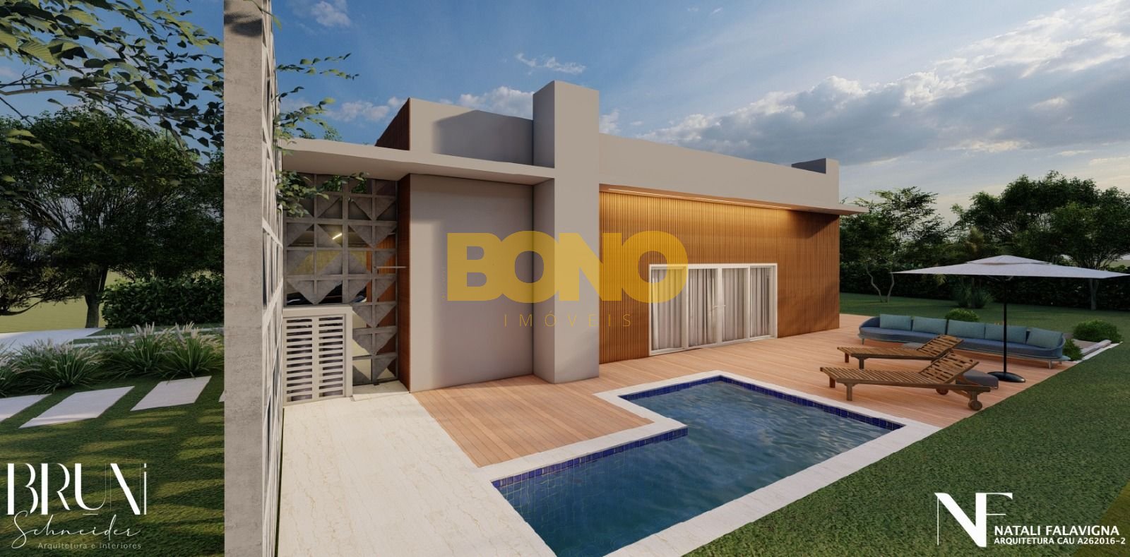 -Piscina moderna com amplo deck