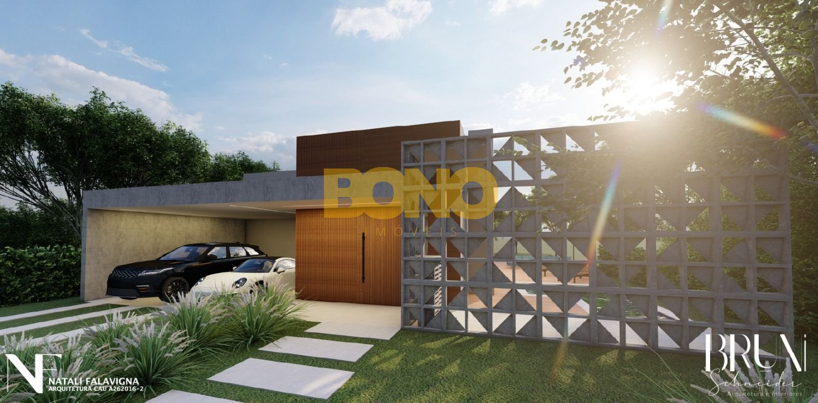 -Projeto com 203 metros privativos, com traços retos e uma mistura de concreto aparente e ripados em madeira.