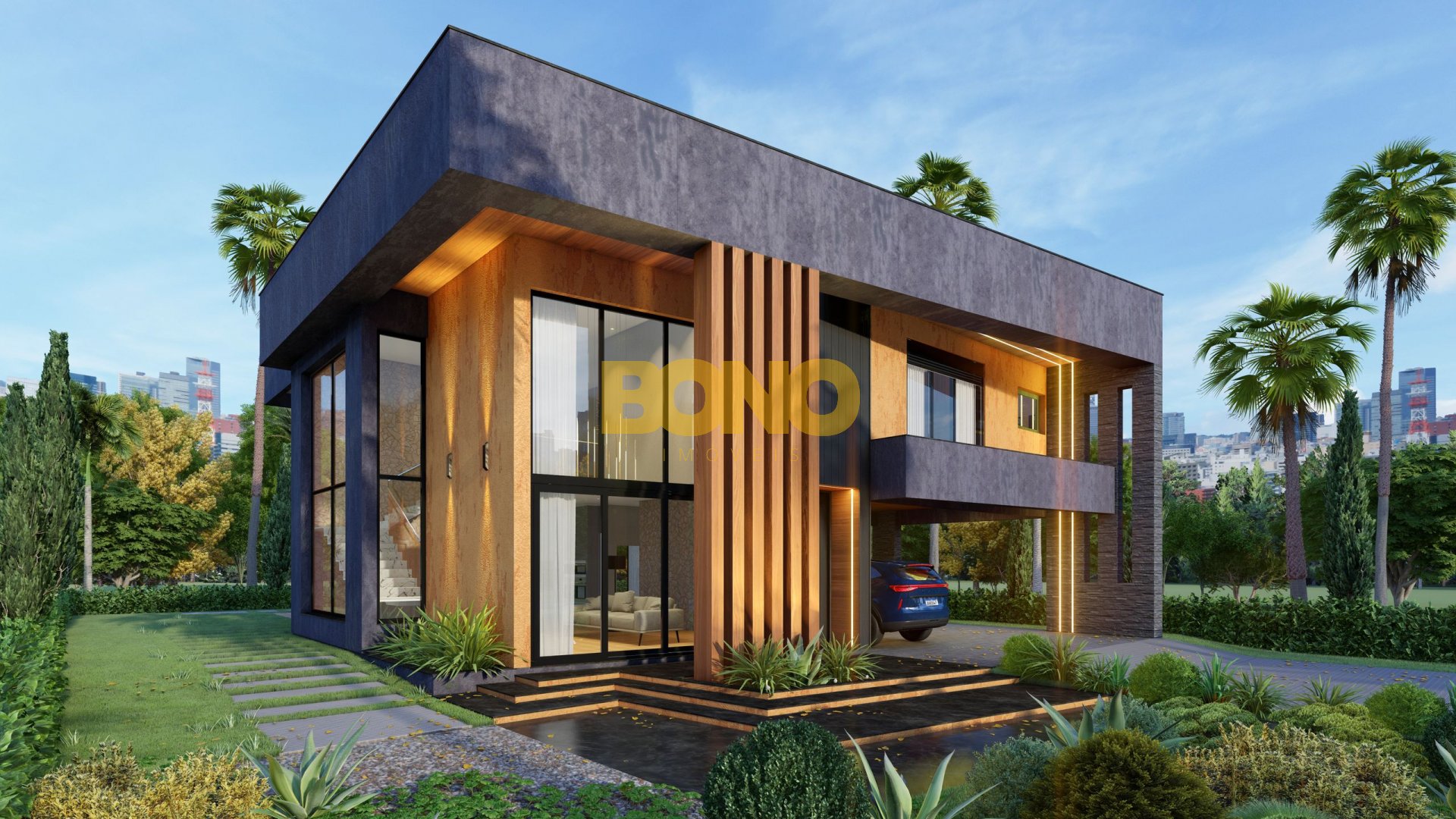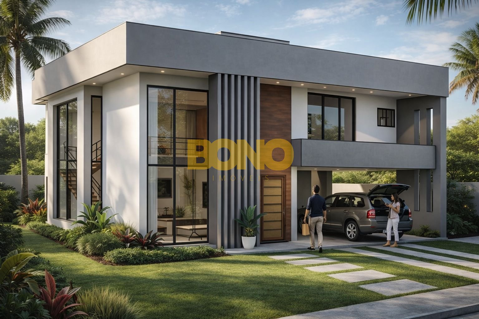 Térreo amplo, com sala integrada, lavabo, pé direito duplo, espaço para home office que pode ser transformado em suíte, garagem coberta para três carros , uma área de serviço ampla, com espaço para depósito e espera para elevador.