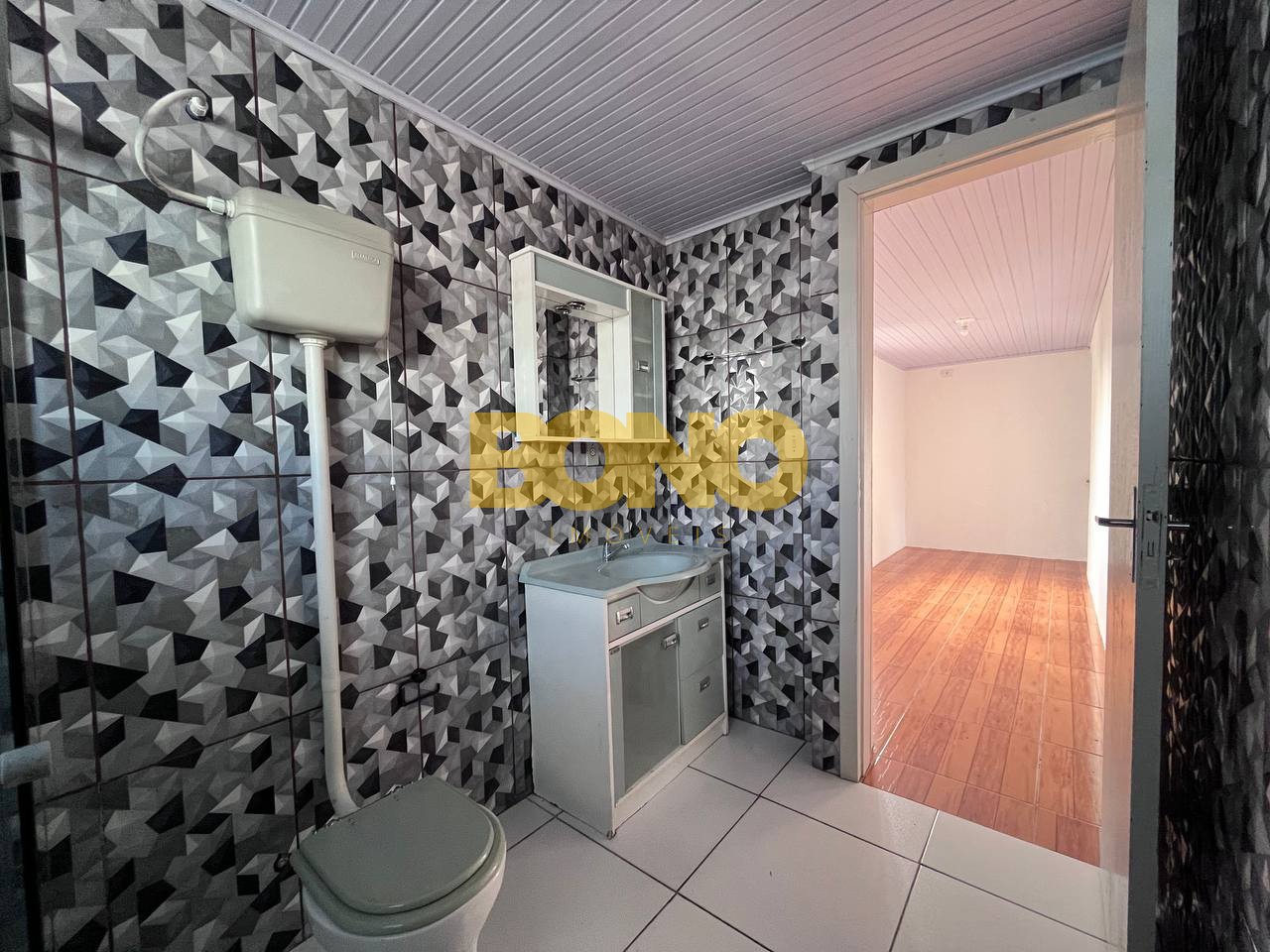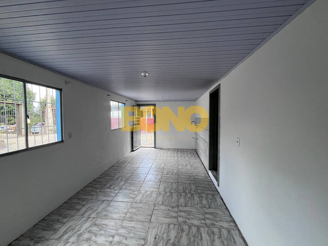 Bono imóveis aluga casa de alvenaria no bairro charqueadas. São dois pisos, piso superior com sala, banheiro e 2 quartos, piso inferior com sala e cozinha, churrasqueira, área de serviço, banheiro e pátio. Estacionamento para 1 carro.
