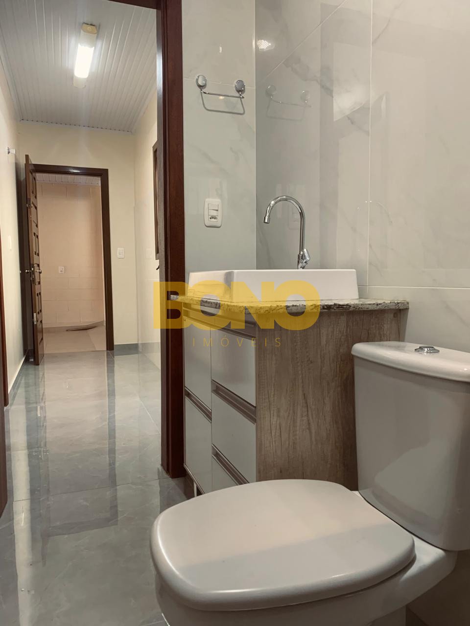 • Banheiro social: bonito e bem ventilado.