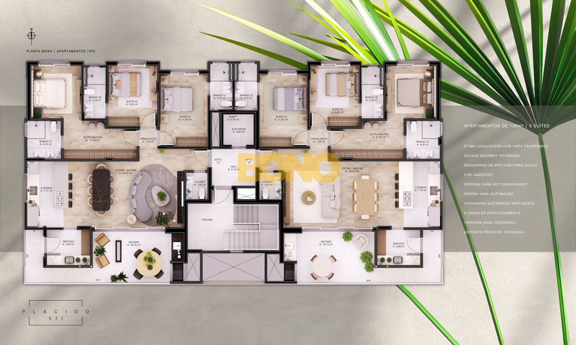 Apartamentos com 135m2 de área privativa
