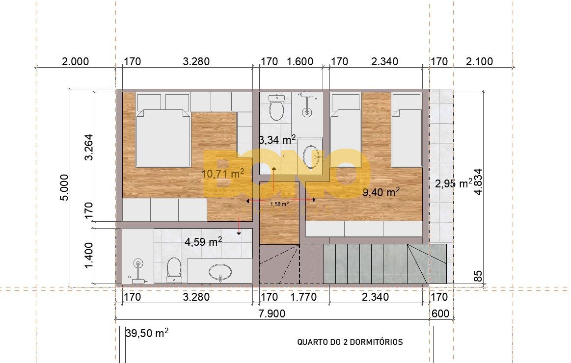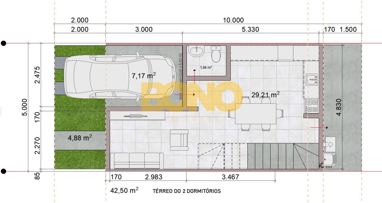 O residencial oferece casas duplex com 2 ou 3 dormitórios, sendo um deles suíte, com opções entre 81 à 100 m ,