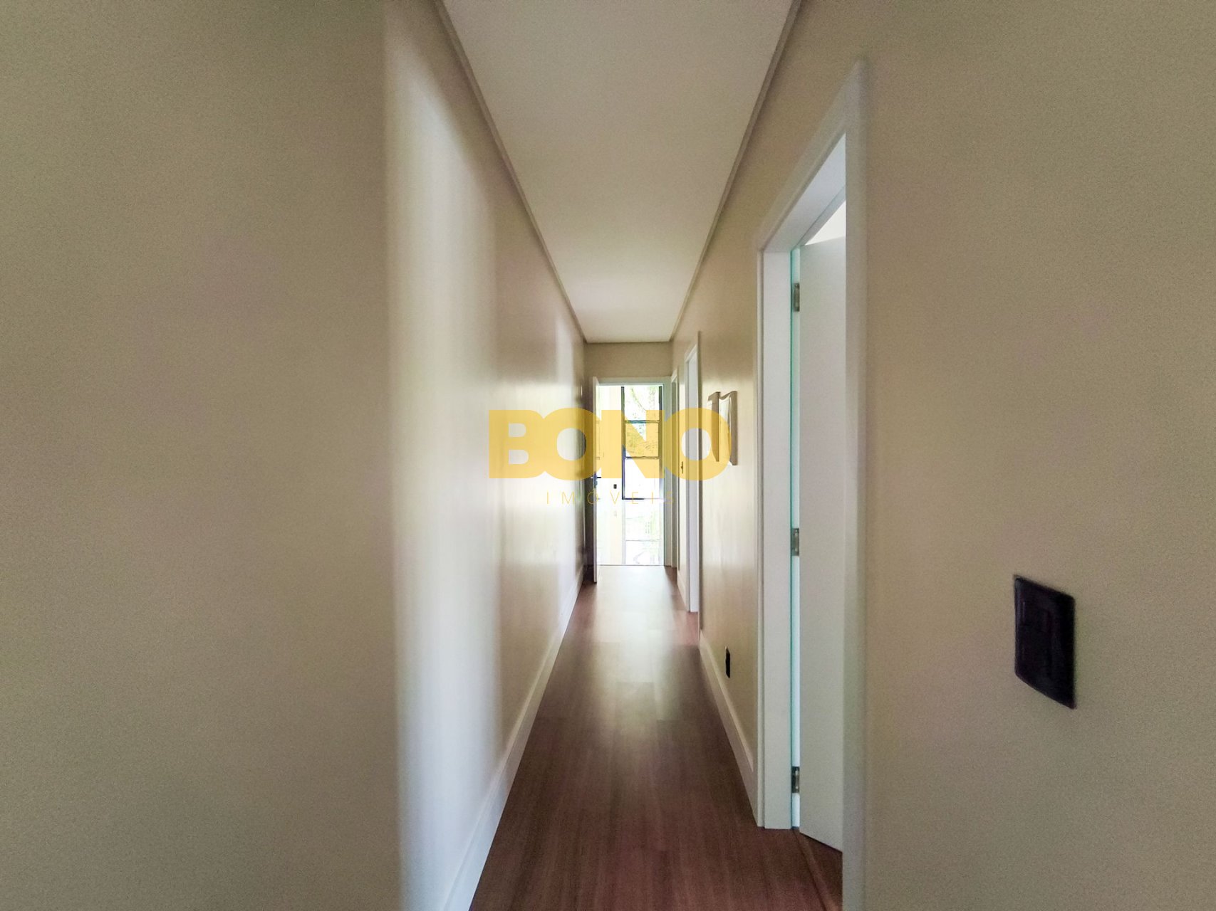 Laminado Premium nos dormitórios, com rodapé de 15 cm, proporcionando maior elegância e acabamento superior