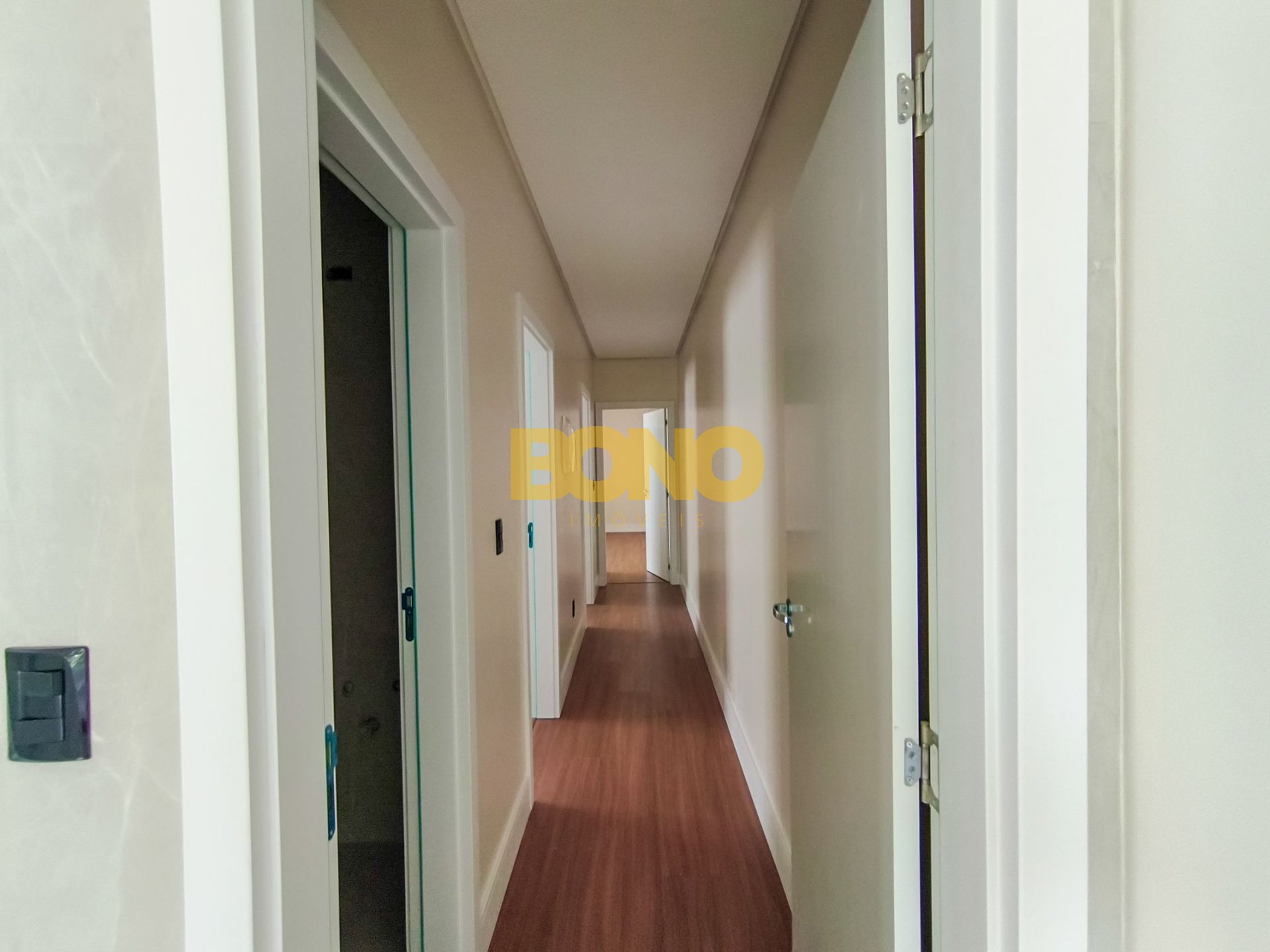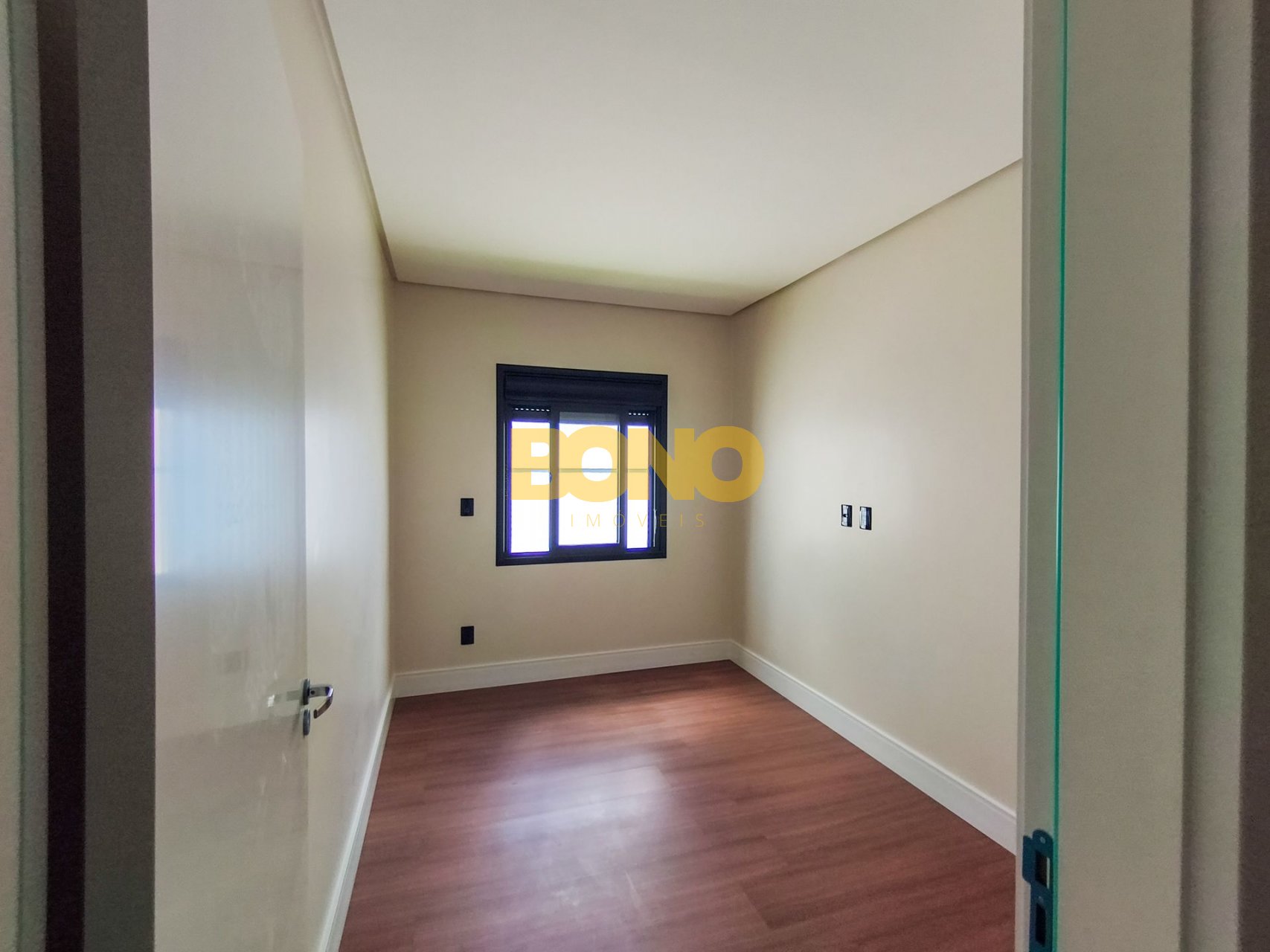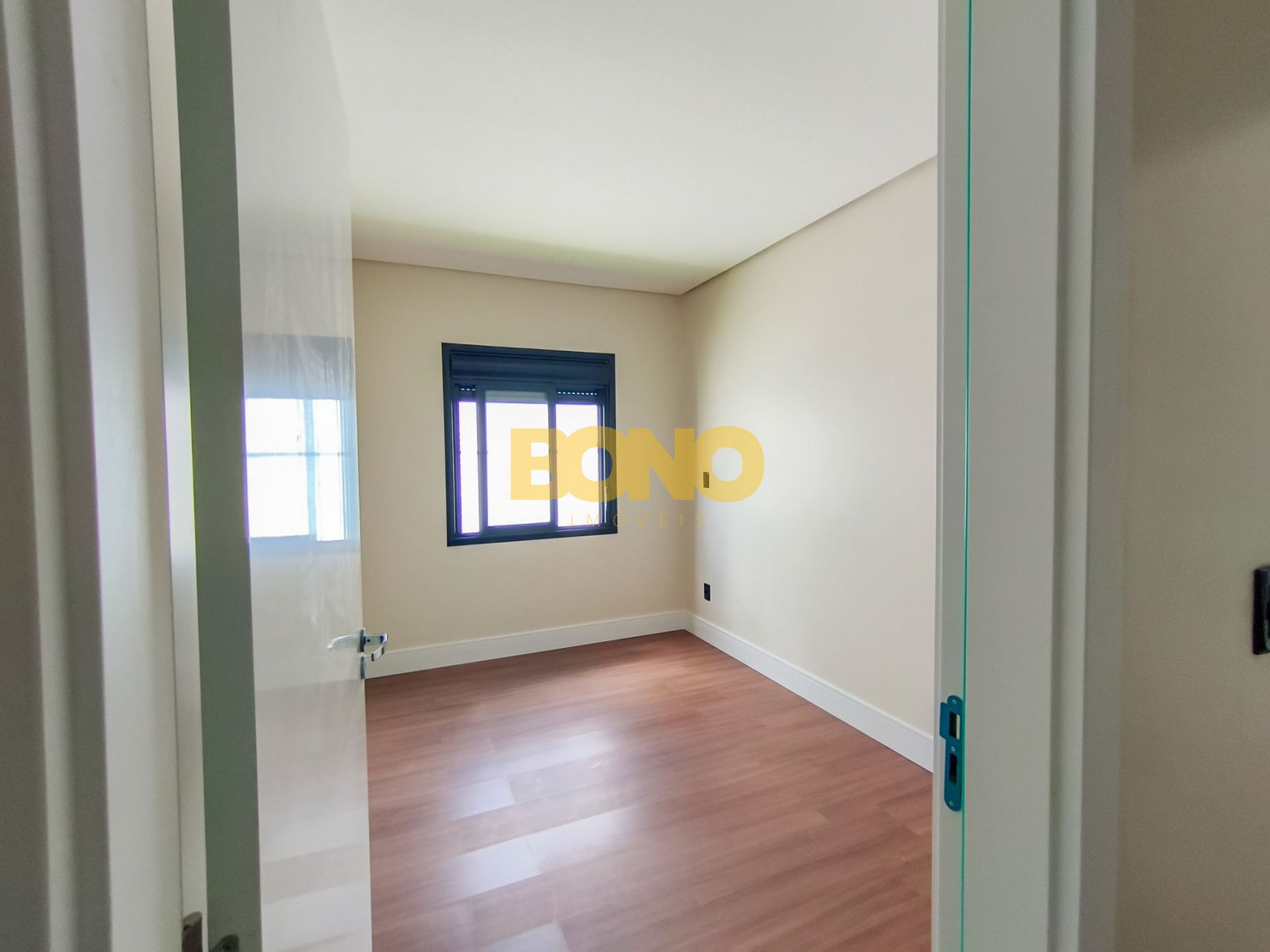 Laminado Premium nos dormitórios, com rodapé de 15 cm, proporcionando maior elegância e acabamento superior
