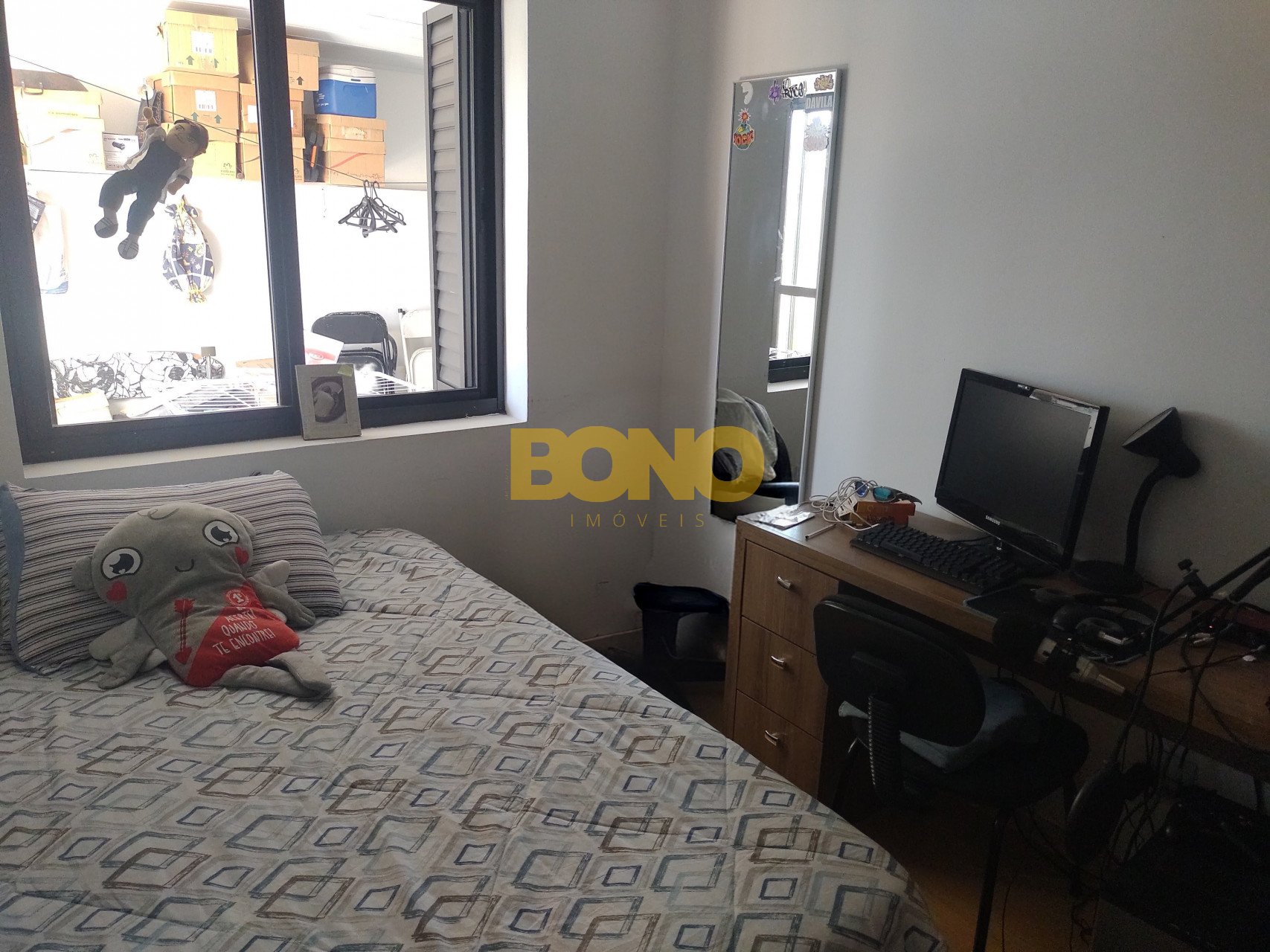 Apartamento com 3 dormitórios , sendo um com suíte e dois quartos de solteiro, sala de estar espaçosa com acesso á sacada principal , 1 banheiro social, cozinha ampla ,área de serviço, 1 box de garagem, posiçao solar norte, sem elevador mas no segundo andar .