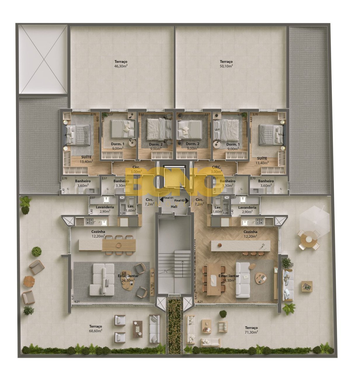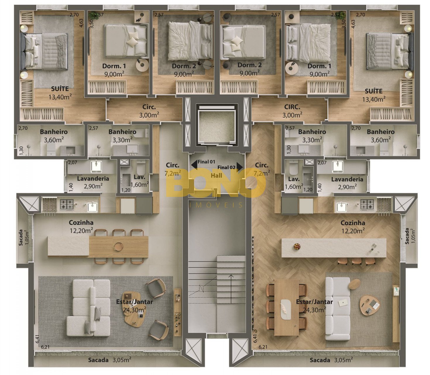 - Apenas 2 apartamentos por andar