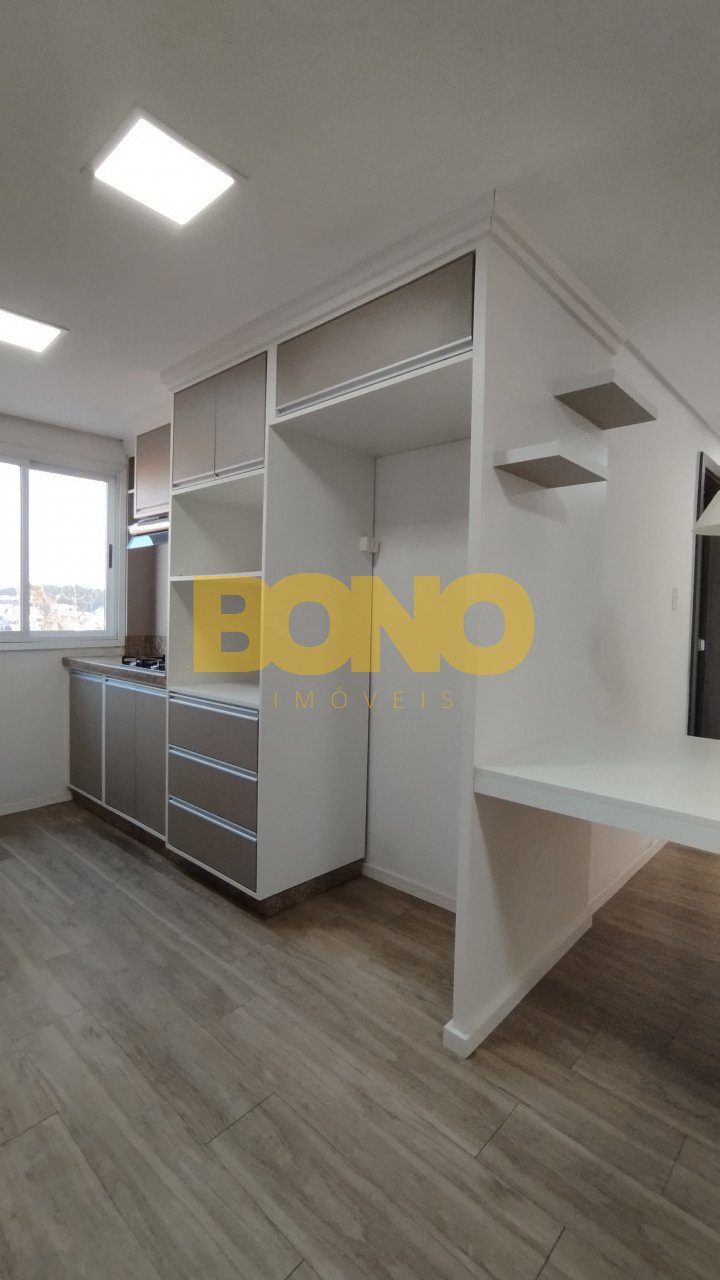 Apartamento Semi mobiliado, com 3 dormitórios, 1 suíte, 1 banheiro social, Área de serviço, 1 cozinha, sala, box de garagem amplo com espaço para 2 carros. Móveis na cozinha, quarto de casal e banheiros.